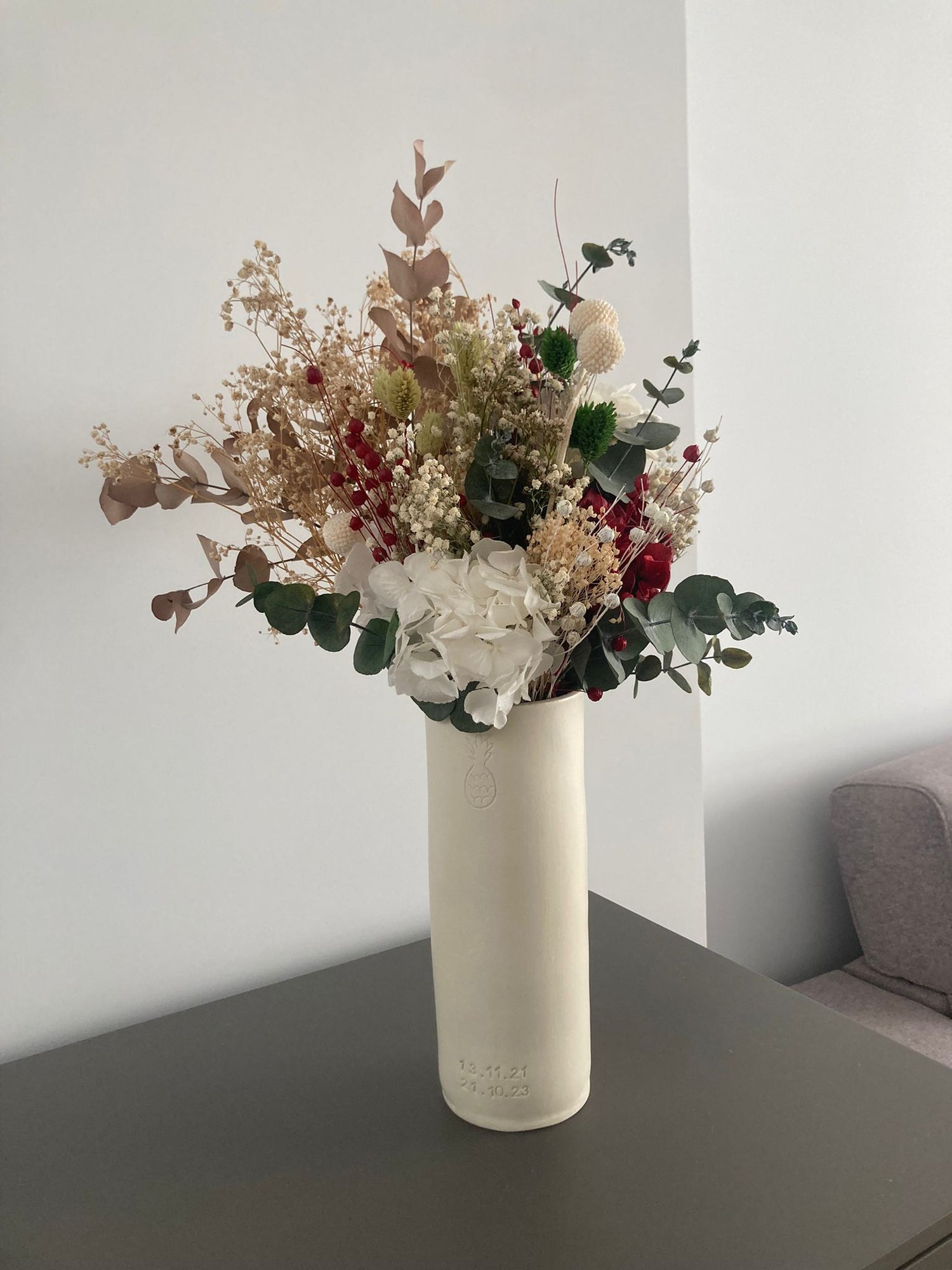 Jarrón personalizado con fecha de boda y/o nombres de los novios, amigos o familiares.