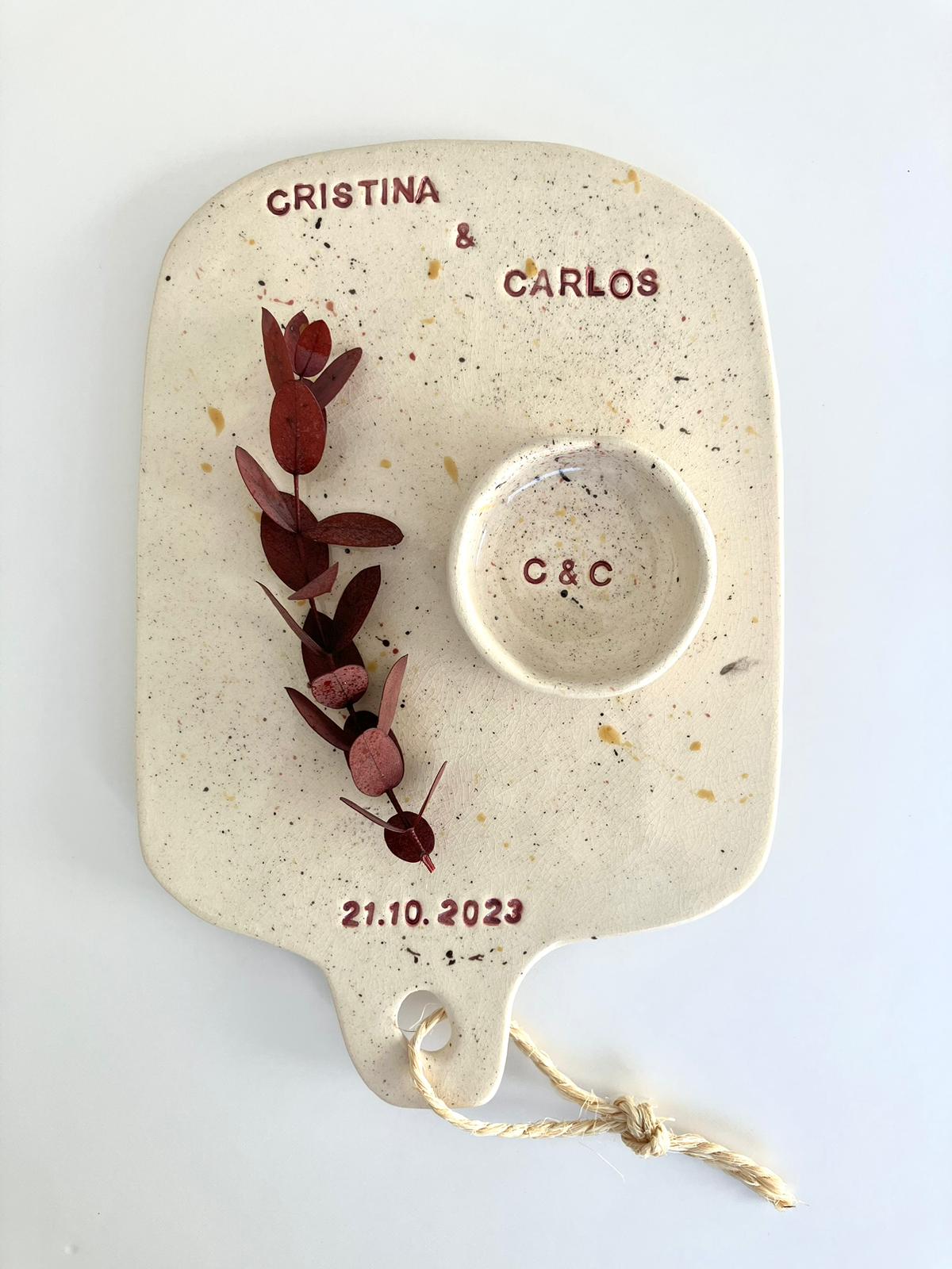 Platito personalizable para llevar las alianzas. Ideal tanto para los novios, como para detalle para invitados futuros novios "sois los próximos". Se pueden personalizar en tamaño, forma y diseño.