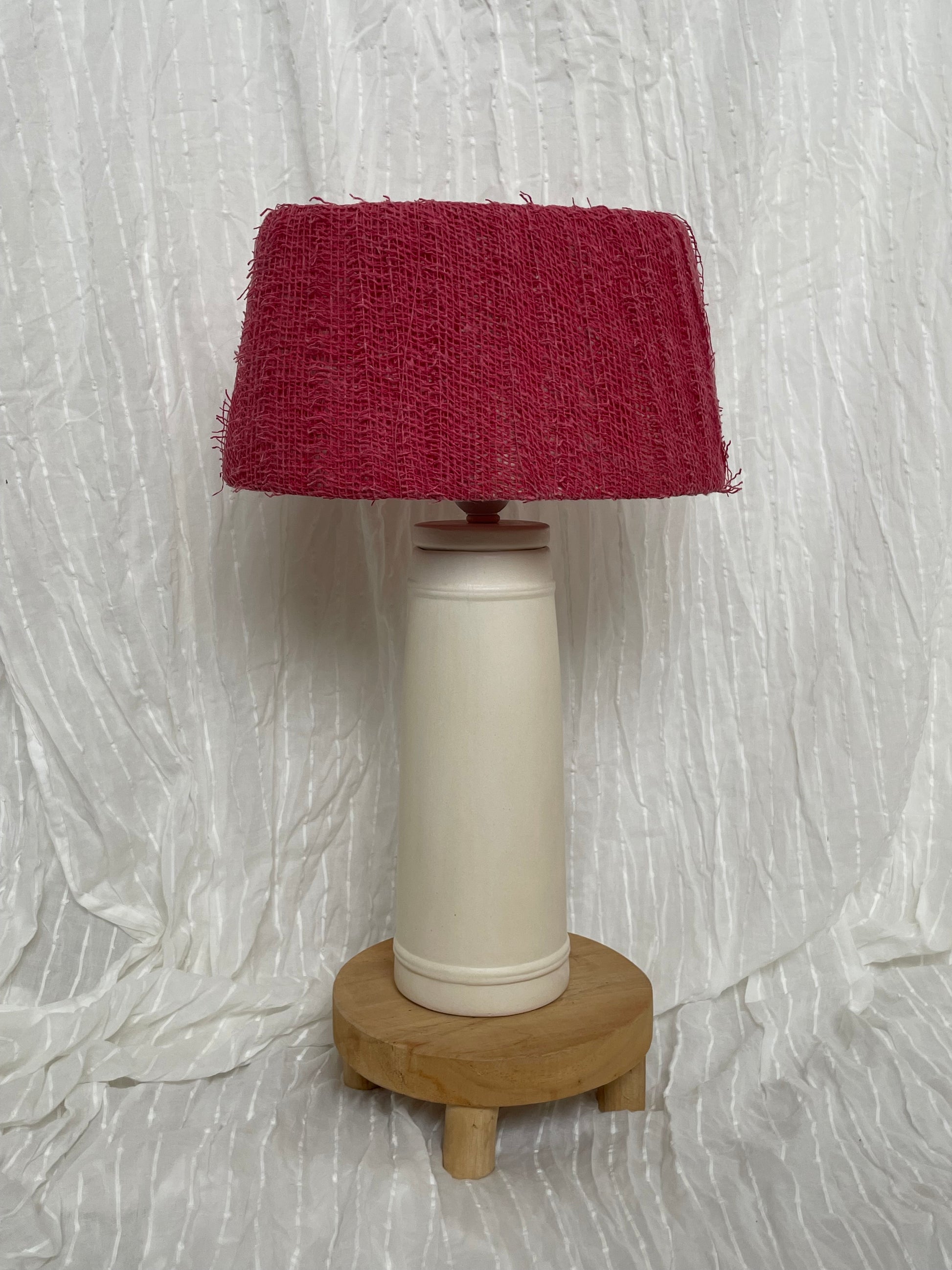 Lámpara hecha a mano en loza blanca, vitrificada con esmalte en acabado blanco roto mate, mediante un proceso de bicocción a baja temperatura 1020 grados.